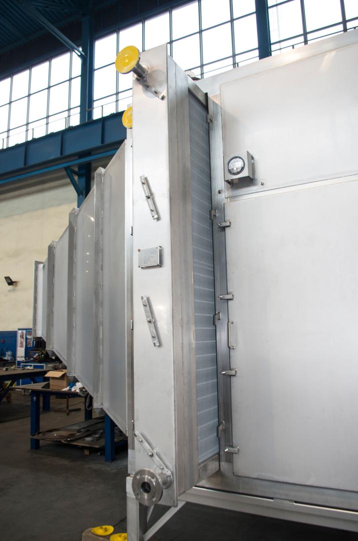 Anytherm’s main products are custom-made heat exchange and heat recovery units for industrial applications. We deliver turn-key systems with insulated casings which can be combined with CIP systems, armatures, filters, fans, sorption wheels, etc. For cleaning and maintenance, the heat exchanger elements can be easily pulled out of the casing, without removing the insulation. For heat recovery systems, our heat exchanger solutions can be executed with integrated CIP systems, with larger fin pitch, in pillow-plate / thermo plate or bare tube execution – especially feasible for handling dust or particle loaded applications.